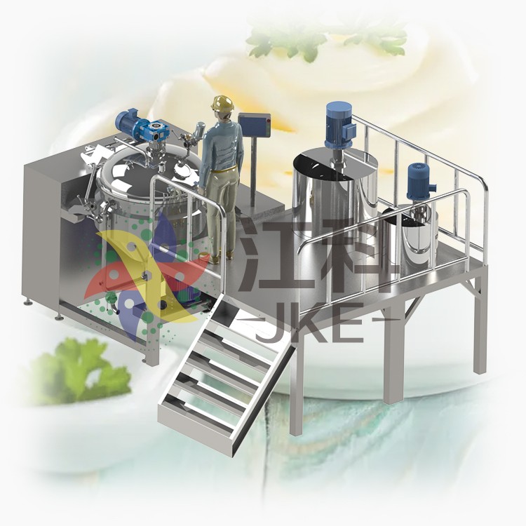 食品醬料油水乳化專用JPS真空乳化機是一種用于食品醬料生產中,實現油水乳化并防止油水分離的設備。以下是其相關介紹:工作原理· JPS真空乳化機通過乳化頭的高速旋轉來切割、分散和沖擊物料。物料在真空的狀態(tài)下,利用高剪切乳化器快速均勻